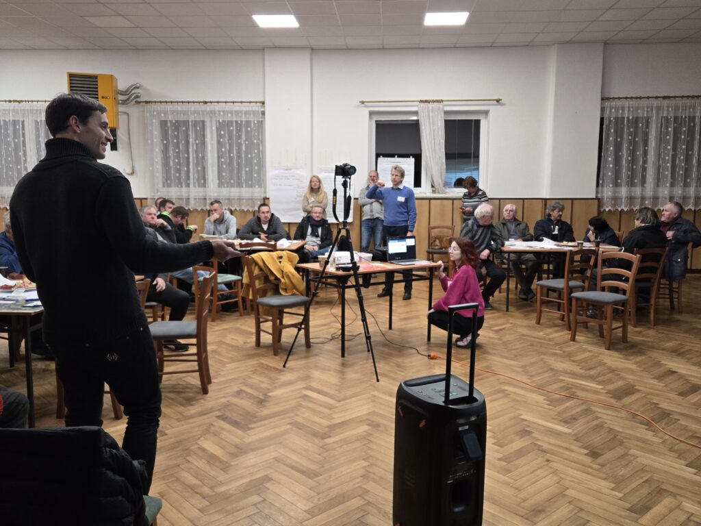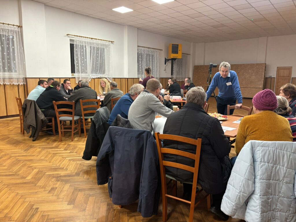 Po skončení skupinových diskuzí a krátké přestávce na občerstvení následovalo shrnutí výstupů z kulatých stolů ve společném prostoru. Z přehledu zaznamenaných obav byly zodpovězeny ty, které obyvatelé považovali za nejzávažnější. Na prvním setkání tak byli obyvatelé vyslyšeni a při dalším jednání, které se uskuteční ve čtvrtek 15. 1. 2026, budeme v debatě pokračovat. Závěrem proběhla neformální diskuze u občerstvení a následně formální ukončení setkání.